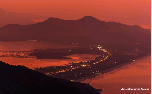 Màn đêm buông xuống, từ đỉnh Hải Vân du khách có thể ngắm toàn cảnh vịnh Lăng Cô hoặc TP Đà Nẵng về đêm.